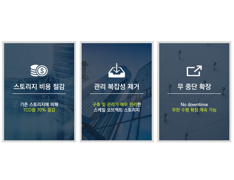 - 기존 스토리지에 비해 TCO 최대 70% 절감
