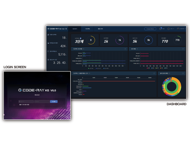 소프트웨어의 개발공정(SDLC) 단계인 분석/설계, 구현, 테스트, 운영단계에서 발생 할 수 있는 소스코드의 보안약점을 관리하기 위해 프로젝트 및 사용자 통합 관리, 프로젝트 보안약점 분석, 형상관리 연동 등 소스코드 통합보안관리 기능을 제공합니다.