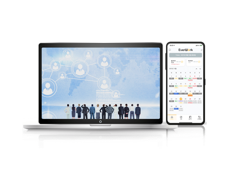 에버타임은 52시간 근무제 및 복잡하고 다양한 근무제를 지원하는 근태관리 솔루션으로 자동화된 근태관리와 급여 연동은 물론 인건비의 정량적인 측정을 기반으로 의미 있는 경영정보 산출까지 완벽하게 지원합니다.