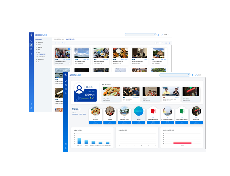 그룹과 사용자의 권한 관리를 통해 메뉴 및 폴더 관리가 가능합니다. 디지털 자산의 더 많은 정보를 관리할 수 있는 메타데이터 그룹을 관리합니다. 보유한 디지털 자산에 대한 다양한 통계기능을 지원합니다.
