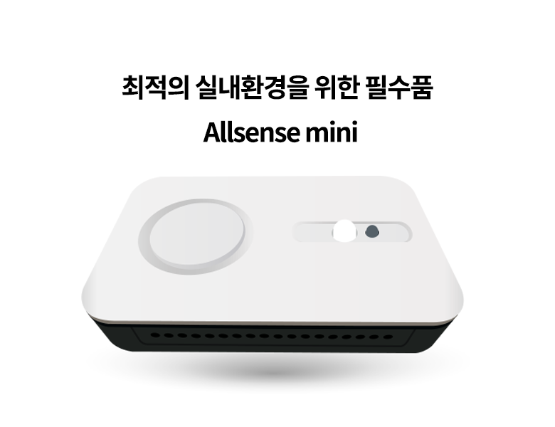 Allsense mini 는 기존의 온/습도, 먼지, 동작감지, CO2, 불꽃센서 등 6종의 센서를 모니터링할 수 있습니다. Allsense mini 의 사용법은 간단합니다. 전원을 연결한 후 블루투스 모드에서 공유기의 SSID를 설정만으로 손쉽게 사용할 수 있습니다. 추가 옵션사항으로 RFID 장치를 부착하면 자산관리 및 도난방지 용도로 사용이 가능하며, 냉난방기와 같은 외부장치를 제어하기 위한 IR코드를 입력하면 외부장치 제어가 가능합니다.