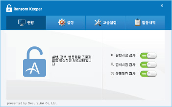 랜섬키퍼는 승인되지 않은 프로세스에 의한 파일 변조를 감지하여 랜섬웨어의 감염으로부터 중요 데이터의 유실을 방지할 수 있는 랜섬웨어 피해 방지 솔루션으로, 악성 행위에 대한 사전방지 및 PC 내 파일들을 실시간 보호합니다.