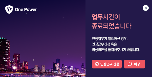 - 탄력, 전환, 기타 근무시간에 따라 개인별, 부서별 알림(근무시간 종료, 연장근무 종료)