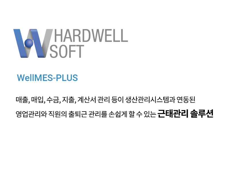 WellMES-PLUS는 매출, 매입, 수금, 지출, 계산서 관리 등이 생산관리시스템과 연동된 영업관리와 직원의 출퇴근 관리를 손쉽게 할 수 있는 근태관리 솔루션입니다.