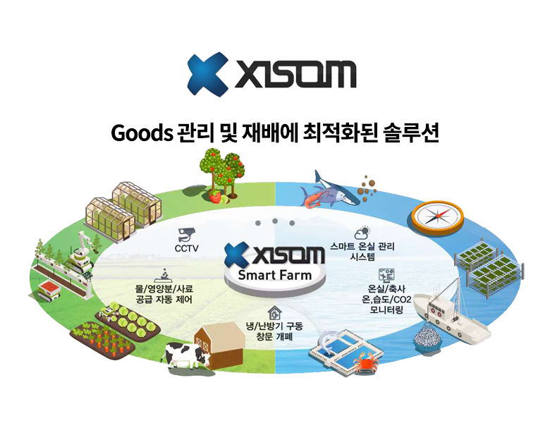 스마트 농장은 정보통신기술(ICT)을 농사 기술에 접목하여 농장에 설치되어 있는 센서, 액추에이터, 기타 기기장치의 사물 인터넷 기술을 활용하여 재배 시설의 온도, 습도, 토양 등의 데이터를 수집 및 활용 후 농장에 설치되어 있는 제어장치들을 구동하여 최적의 환경으로 변화시킬 수 있도록 하는 시스템입니다. 사용자 설정에 따라 자동 또는 수동으로 원격관리도 할 수 있습니다. XISOM 솔루션은 HTML5를 표준으로 하여 다양한 웹과 호환이 가능하여 장소와 상관없이 언제 어디서나 제어 및 모니터링을 통하여 농장을 관리할 수 있습니다. 사용자 설정에따라 농장에 재배 환경에 이상이 생겼을 시 알림 등을 통하여 즉각적으로 대응할 수 있습니다. 스마트한 장치와 스마트한 Solution을 접목시켜 농장의 생산성, 효율성 및 품질 향상이 가능합니다.