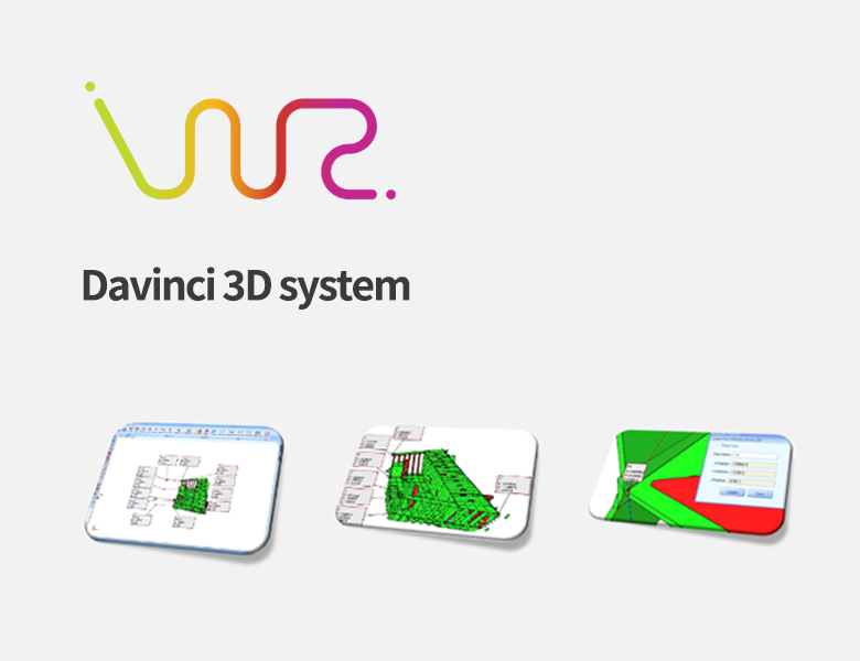 Davinci 3D System은 선박 제조과정에서 선체 정도 관리를 위해 제작되어진 3차원 입체 시뮬레이터 입니다. 선체 정도 관리는 가공, 취부, 조립, 의장 등 모든 공정에 적용되어 선박제조 작업공정에서 시간과 비용을 최소화하고, 정밀도를 향상시킴으로써 선체설계와의 오차를 줄일 수 있습니다.