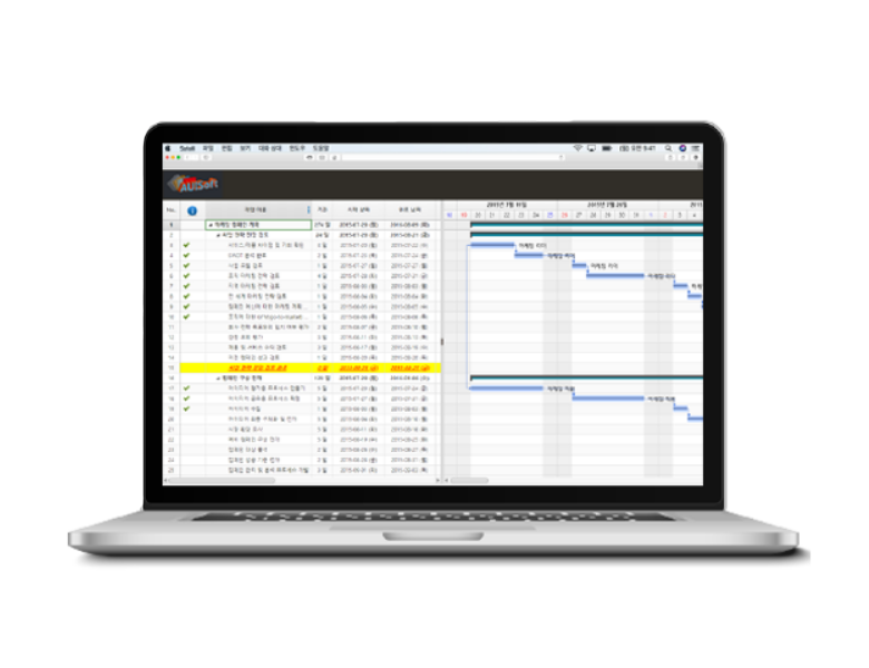 AUIGantt 는 Active-X 사용 없이 자바스크립트와 HTML, CSS 로 작성된 웹 간트차트 컴포넌트 입니다.