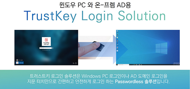 트러스트키 로그인 솔루션(TKL)은 Azure Active Directory(Azure AD) 도메인 로그인이나 Windows PC 로그인 시, 보안키의 지문 터치만으로 간편하고 안전하면서 편리하게 로그인 할 수 있는 Passwordless 인증 솔루션 입니다.