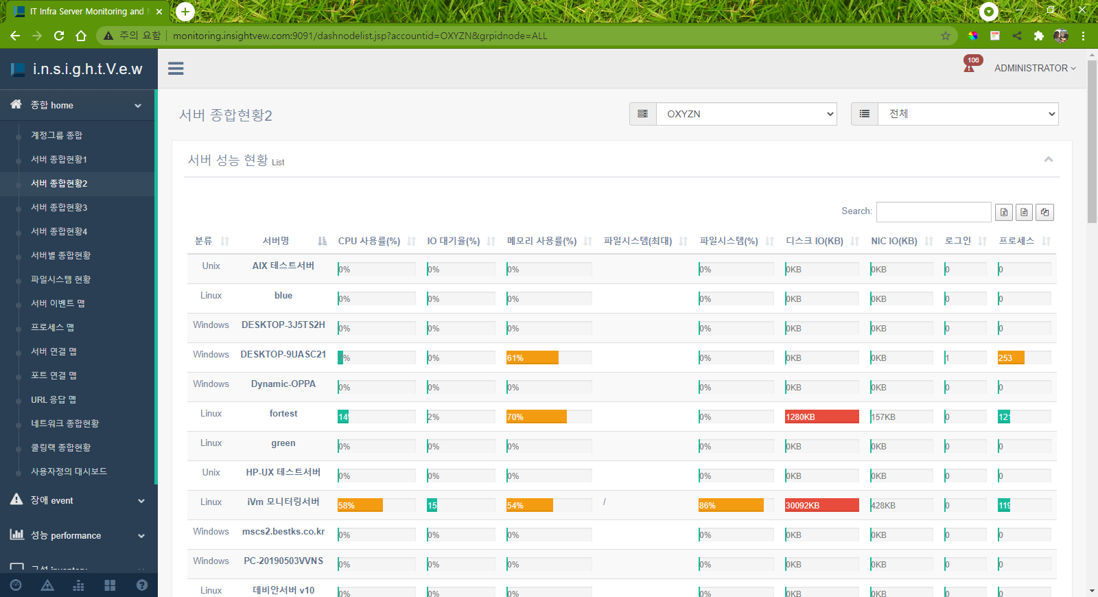 Linux/Unix, Windows 서버 OS 및 도커 컨네이터, 데이터베이스, WAS, 쿨링랙 등에 대한 장애/성능/구성정보 모니터링을 통하여 IT 인프라 서버의 안정적인 운영을 지원합니다.