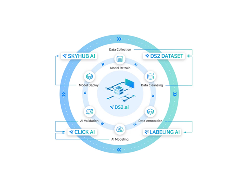 디에스랩글로벌에서 개발한 DS2.ai는 Data-Centric MLOps기반의 인공지능 자동개발 플랫폼입니다. MLOps란 개발과 운영을 따로 나누지 않고, 개발의 생산성과 운영의 안정성을 최적화 하기 위한 문화이자 방법론인 DevOps를 머신러닝(ML)에 적용한 것입니다. DS2.ai는 코딩을 할 필요없이 인공지능을 자동 개발할 수 있어서, 기업, 공공기관, 의료기관, 교육기관 등에서 AI를 도입할 때 필요한 많은 개발자를 최소화하며 빠른 시간에 기업에 필요한 AI를 자동으로 만들 수 있습니다.