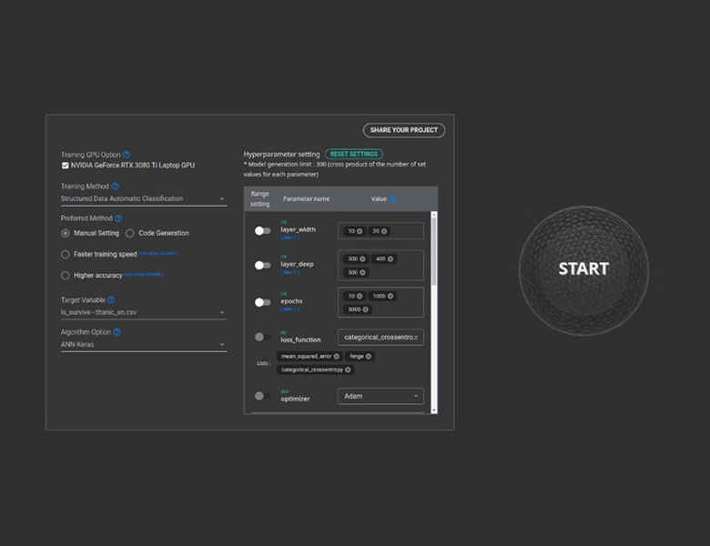 디에스랩글로벌의 원천기술을 바탕으로 프로그램을 코딩할 필요없이 인공지능을 자동개발해주는 Data-centric MLOps 기반의 플랫폼으로 개발자 없이 빠른 시간에 기업용 AI 를 자동으로 개발 가능하게 합니다.