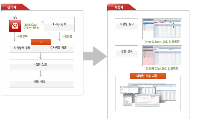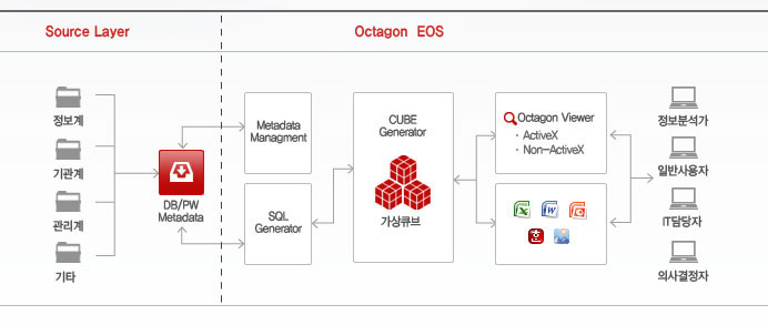 Octagon EOS는 OLAP(On-line Analytical Processing)기반의 환경을 제공합니다. OLAP이란 사용자가 다양한 각도에서 직접 대화식으로 정보를 분석하고 의사결정에 활용하는 과정을 말합니다.
