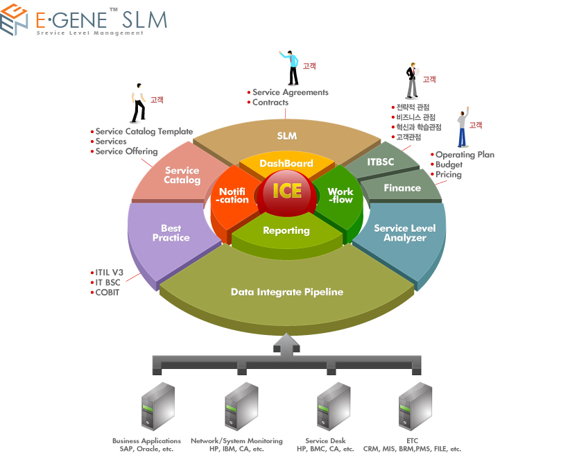 오늘날 서비스관리에 대한 중요성은 끊임없이 강조되고 있으나, 기업의 목표와 목표달성, 지속적인 비용과 연관하여 탁월한 서비스를 제공하기는 많은 어려움이 있습니다.에스티이지의 E-GENE™ SLM 솔루션은 Service Delivery 관리 프로세스를 지원하는 웹 기반의 강력한 솔루션으로 비즈니스 목표와 목표달성, 비용절감을 위한 최상의 서비스를 제공하는 것을 도와줍니다.