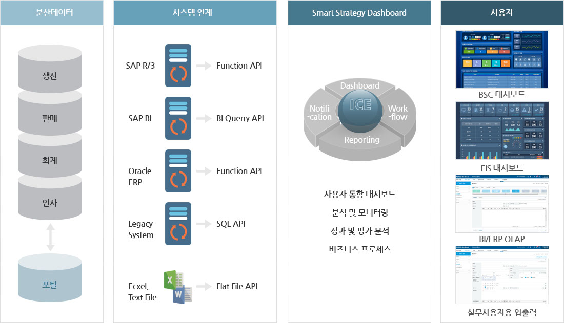 오늘날 기업의 비즈니스 데이터에 대한 중요성은 끊임없이 강조되고 있으나, 기업의 목표와 목표달성, 지속적인 비용과 연관하여 탁월한 의사결정을 제공하기는 많은 어려움이 있습니다. E-GENE™ SSD는 ERP, BI, SEM, SCM등의 다양한 데이터를 가치 있는 정보로 재창출하여 기업의 정확한 의사결정에 활용할 수 있는 BI 솔루션입니다.