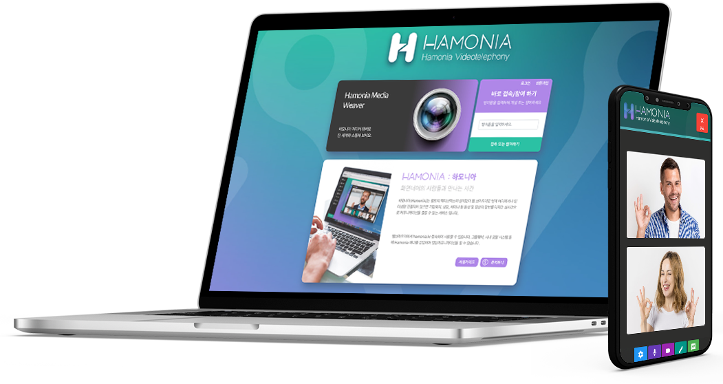 하모니아 미디어위버는 다양한 디바이스와 웹환경에서 실시간 화상통신을 하기 위해 만들어진 시스템입니다.