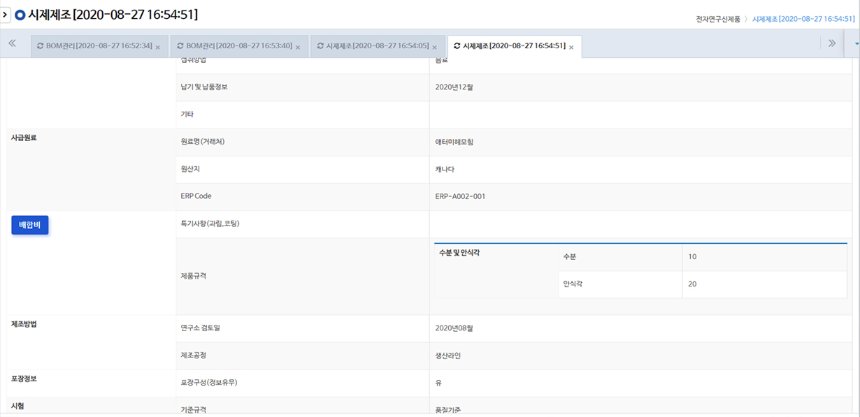 - 품목의 입고에서 생산에 투입되는 Product의 품질관리