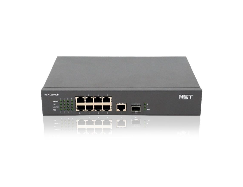 NSH-2010LP는 10/100Mbps PoE 8 포트와 업링크용 1Gbps SFP 1 포트, 1Gbps RJ-45 1 포트를 지원하는 장거리용 PoE 스위치로 CCTV 카메라나 무선랜 AP에 특정 PHY 적용시 데이터를 기준으로 100Mbps의 속도로 최대 500m까지 전송이 가능합니다. 또한 인터넷 전화기, 고성능의 CCTV 카메라, 고출력 무선랜 AP를 안정적으로 접속하기 위한 30W급 IEEE 802.3af/at 표준 PoE를 제공하여 안정적인 전원을 공급합니다. 별도의 제품 설정 없이 설치가 가능하며, UTP 케이블의 길이에 제약이 없으므로 시공 및 유지보수 시에 편의성을 제공합니다.