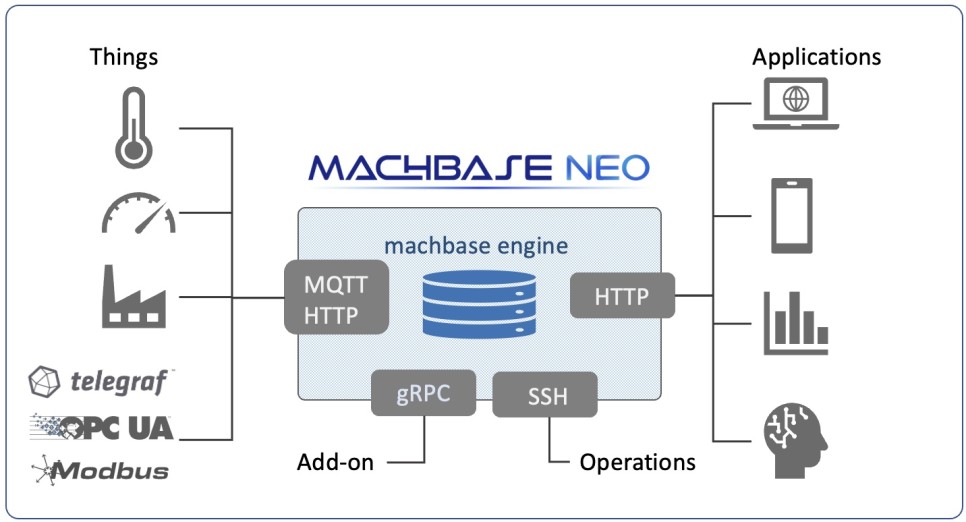 마크베이스가 만든 세계 최고 성능의 시계열 DBMS(Database Management System)로서 진동 센서나 설비, 장치에서 폭발적으로 발생하는 IoT 데이터의 실시간 수집, 저장, 분석에 최적화된 TSDB(Time Series Database)