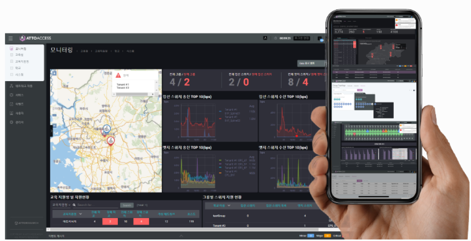 ATTO ACCESS(아토액세스)는 국내 유일의 소프트웨어 정의 네트워킹(SDN) 전문기업인 아토리서치가 새로운 네트워크 기술을 적용하여 사용자 편의성을 고려해 선보인 SDLAN 솔루션입니다. 본사에서 지점까지 다양한 사용자 네트워크 환경을 중앙에서 통합 관리할 수 있도록, 표준 프로토콜인 오픈플로우(OpenFlow)를 지원하는 개방형 컨트롤러를 제공합니다. 자체 보유한 스위치 라인업과 함께 글로벌 네트워크 제조사가 제공하는 다양한 스위치 제품군을 기반으로 고객에 적합하고 유연한 확장이 가능한 네트워크 구축 방안을 제공합니다