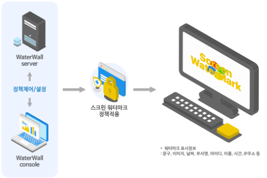 워터월 SWM(WW SWM)는 PC 화면 전체에 워터마크를 삽입하여 프린트 스크린과 화면 캡쳐 둘의 사용을 제한하며, 휴대기기를 사용한 촬영을 대비하여 내부 중요 문서 및 민감한 파일의 무단 유출 • 유통을 예방합니다.