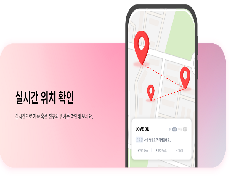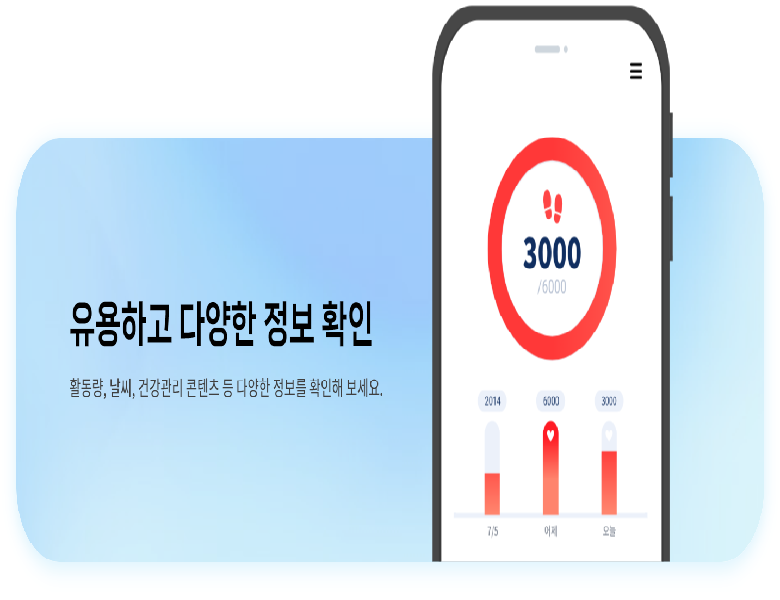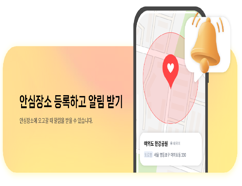 항상 소지하고 있는 휴대폰 데이터를 기반으 로 구성원을 연결하고 소통을 도와 서로의 안위를 확인합니다. 가족 구성원의 활동량, 위치 및 날씨 공유, 안심존 이탈 확인을 통해 서로를 보호하고 소통할 수 있습니다. 낙상으로 인한 충격 및 미사용 알림 기능을 통해 위급상황의 골든타임을 놓치지 않을 수 있습니다.