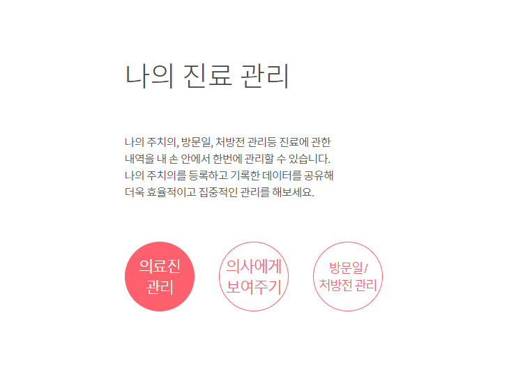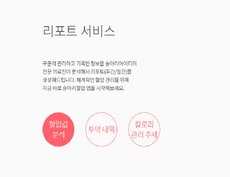 건강관리의 첫걸음, 나의 혈압을 관리할 수 있는 서비스로 혈압, 투약, 식사와 운동을 쉽고 편하게 입력해 보세요. 여러분의 건강을 체계적으로 관리해 드립니다.