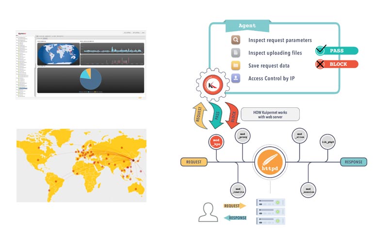 웹소스 보안취약점을 차단하는 필수 솔루션 SQL인젝션, 웹쉘공격등 웹소스 보안을 지켜드립니다. 웹방화벽이란 웹 소스의 보안취약점으로 인하여 발생하는 웹 해킹 등의 보안사고 차단하기 위한 서비스입니다. Layer7 레벨에서 http와 https를 감시하고, 악의적인 공격을 탐지하여 웹서버에 도달하기전에 차단합니다. 또한 알아차리기 어려운 웹소스변조등도 24시간 탐지하여 웹서비스를 보호해드립니다.