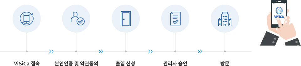 ViSiCa는 내방객에 대한 출입관리와 반입 스마트폰 통제로 무분별한 출입으로 인한 보안 위험을 제거하고 스마트폰을 이용한 내부정보 유출을 방지합니다.