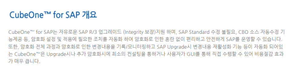 • 암호화 적용 시 SAP Upgrade 보장, 보안성 확보