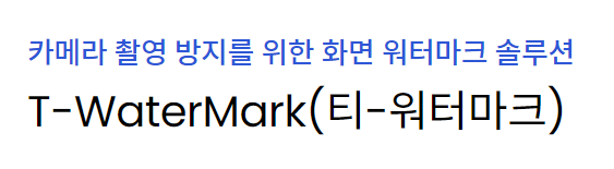 T-Watermark는 화면을 카메라로 촬영하거나 화면 캡쳐 후 불법으로 유출하는 것을 방지해 주는 “PC 화면 워터마크 솔루션”입니다.