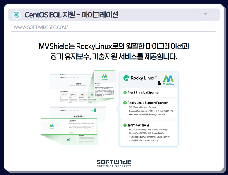 #리눅스#Linux#CentOS#센트OS#RockyLinux#로키리눅스#록키리눅스#리눅스유지보수#리눅스기술지원#MontaVista#몬타비스타#MVShield#EOLOS#OS#CentOSEOL#CentOSEOS#OS마이그레이션#엔터프라이즈리눅스#CentOS전환#CentOS종료#CentOS지원종료#RHEL#RedHat
