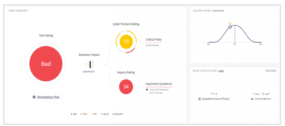 • 공급업체 대상 외부테스트,보안질문지,종합적인 보안 등급 제공