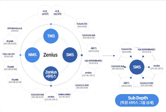 Zenius는 고객이 어떠한 인프라를 사용중에 있더라도,이를 통합적으로 수집하고 관리할 수 있습니다. 업계 최다 포인트 솔루션을 보유하고 있으며,이 솔루션들을 중앙화 관리할 수 있는 통합 플랫폼을 제공합니다.
