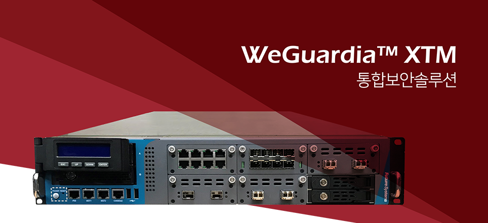 WeGuardia™ XTM는 멀티코어를 기반으로 개발된 확장형 통합위협관리(The eXtensible unifiesd Threat Management) 제품으로 퓨처시스템만의 코어 분산 처리방법을 적용한 통합보안 솔루션 입니다.