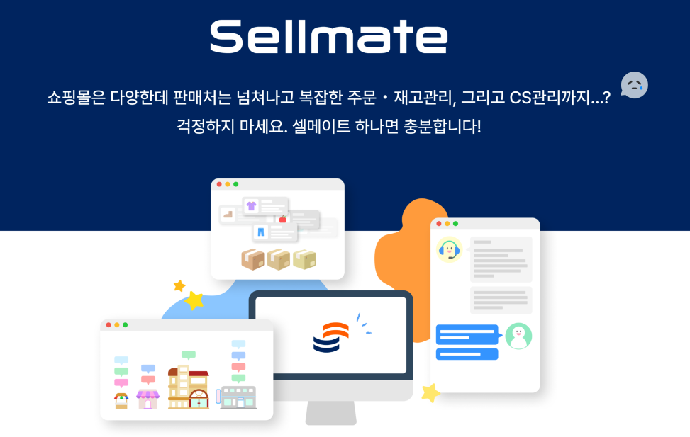 쇼핑몰을 다양한데 판매처는 넘쳐나고 복잡한 주문, 재고관리, 그리고 CS관리까지..? 걱정하지 마세요. 셀메이트 하나면 충분합니다.