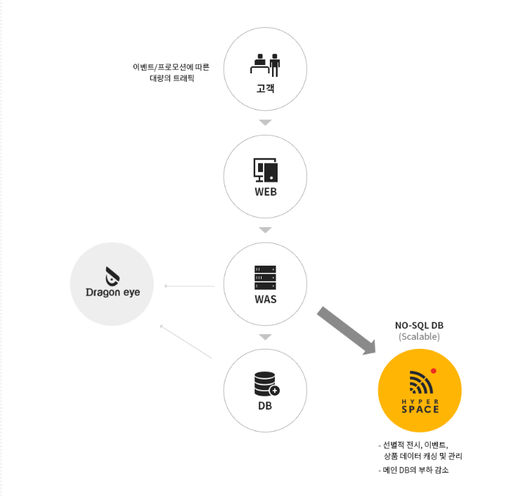 파이언넷의 “HyperSpace” 기술은 이러한 대량의 트래픽이 발생하더라고 메인 DB에 치명적인 영향이 없도록 부하 분산을 위한 데이터 캐싱 기능을 제공합니다.z