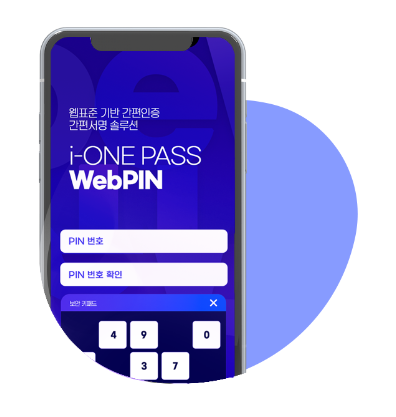 i-ONE PASS WebPin은 별도 앱이나 프로그램 설치 없이 전자서명 지원 가능한 웹표준 기반 간편서명 솔루션입니다.