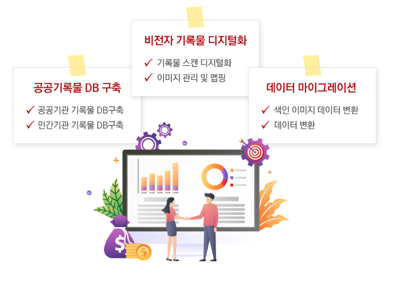 (주)디앤디기술은 기록물 관리 전문기업으로 국내 최고 수준의 기술력을 갖추고 있으며, 지속적인 성장과 다수의 DB구축사업 수행경험의 축적된 노하우를 통해 고객의 요구를 충족 시킴은 물론 기록관리 기술의 표준화를 선도하는 기술 및 서비스 제공을 위해 연구하고 있습니다.