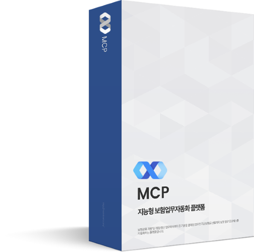 지능형 보험업무자동화 플랫폼-MCP(Micro Cube Platform)는 보험상품 개발 및 개정/갱신 업무에서부터 장기보험 클레임 업무인 지급보험금 산출까지 보험 업무 프로세스를 자동화하는 플랫폼입니다.