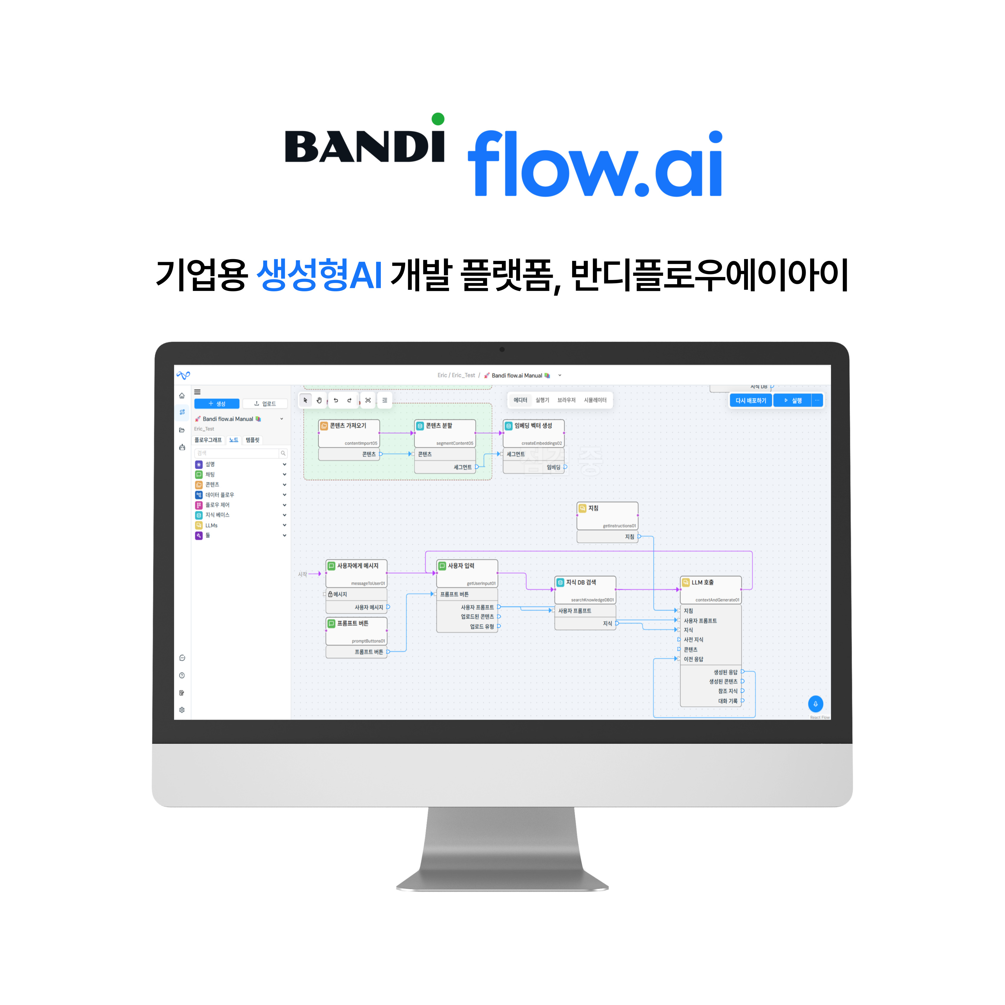 기업 전용 생성형 AI 서비스의 빠른 개발과 출시를 위한 올인원 플랫폼입니다. Bandi flow.ai 를 통해 복잡한 코딩 없이 쉽고 빠르게 조직을 위한 맞춤형 AI 서비스를 만들고 실무에 적용해보세요. 단순 챗봇을 넘어 고급 RAG/LLM 기반의 정교한 AI 에이전트 및 애플리케이션을 개발하고 배포, 운영까지 한번에 할 수 있습니다.